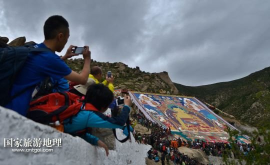 國家旅游地理 西藏拉薩8月6日訊 8月6日,拉薩哲蚌寺舉行展佛儀式。當(dāng)日,以西藏最大的格魯派寺廟哲蚌寺展佛為開端的雪頓節(jié)在拉薩拉開序幕。每年藏歷六月底七月初是西藏傳統(tǒng)的節(jié)日“雪頓節(jié)”。在藏語中,“雪”是酸奶子的意思,“頓”是“吃”“宴”的意思,“雪頓節(jié)”按藏語解釋就是吃酸奶子的節(jié)日,因此又叫“酸奶節(jié)”。因為“雪頓節(jié)”期間有隆重?zé)崃业牟貞蜓莩龊鸵?guī)模盛大的曬佛儀式,所以有人也稱之為“藏戲節(jié)”“曬佛節(jié)”。 /新華社記者 普布扎西攝