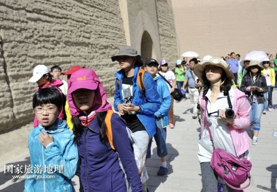國(guó)家旅游地理 甘肅酒泉8月10日訊 8月10日,游客在嘉峪關(guān)城門前參觀。近一個(gè)月來,我國(guó)許多地區(qū)持續(xù)高溫天氣,西北地區(qū)成為眾多游客逃離酷暑、納涼觀光的好去處。據(jù)了解,目前甘肅省內(nèi)各大旅行社絲綢之路旅游線路預(yù)訂火爆。敦煌莫高窟、嘉峪關(guān)等多個(gè)景區(qū)游客爆滿,賓館甚至出現(xiàn)一房難求的現(xiàn)象,旅游部門提醒有出游需求的游客盡量提早預(yù)訂,保證順利出游。 /新華社記者 陳斌 攝