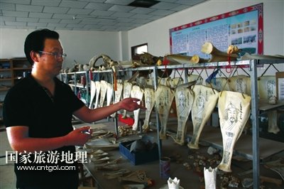 抱著十分好奇的心態(tài),記者決定前去探訪。在鄂托克前旗宣傳部一位工作人員的指引下,記者來到了鄂托克前旗民族職業(yè)高中的教學(xué)樓辦公室,見到了哈斯達來老師。因為整個辦公室內(nèi)有許多骨雕、沙雕等許多藝術(shù)作品,所以看上去有些凌亂。