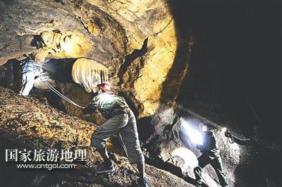 摘要: 這次發(fā)現(xiàn)的天然溶洞由前洞、后洞組成。前洞有水、旱兩洞,水洞在洞口處,十分狹小僅能由一人通過(guò),斜向下5米處被亂石堆滿洞口,沿著亂石成堆的石頭,跨過(guò)一個(gè)巨大的鐘乳石,斜向上約3米有一洞窟約200米見(jiàn)方,石壁周圍布滿仙桃、石柱等形態(tài)各異的鐘乳石,頂