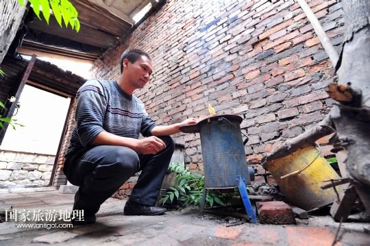 國(guó)家旅游地理 寧夏石嘴山9月6日訊 在寧夏回族自治區(qū)石嘴山市大武口區(qū)人民街道工人街社區(qū)的原洗煤廠老舊小區(qū)內(nèi),46歲的馬連生在院子里生火準(zhǔn)備燒開水。他在這里已經(jīng)居住了14年(9月3日攝)。