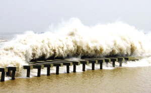 在蕭山美女壩和九號(hào)壩處,海塘轉(zhuǎn)彎,潮水沖擊丁字壩和江堤,同樣能形成“回頭潮”;錢(qián)塘江由西折向南面,到九溪珊瑚沙一帶,同樣有一條長(zhǎng)長(zhǎng)的江堤伸入江中,雖然潮水到達(dá)這里開(kāi)始減弱,但當(dāng)潮水方向與風(fēng)向一致時(shí),推波助瀾,潮浪也會(huì)很大。