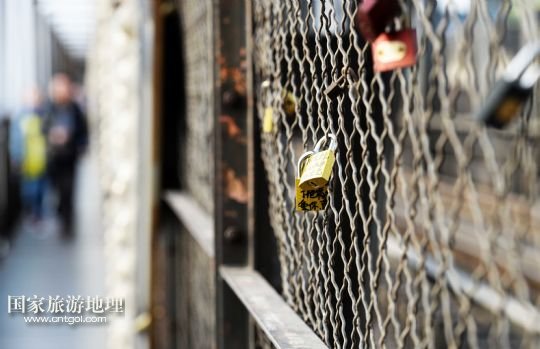 哈爾濱濱洲鐵路橋上的每一對(duì)銅鎖都記錄著一段愛(ài)情(4月19日攝)。