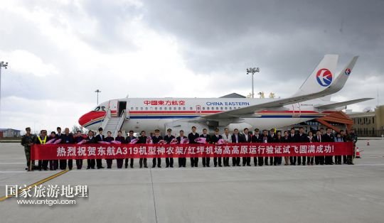 國(guó)家旅游地理 湖北神農(nóng)架4月28日訊 4月28日,試飛成功后機(jī)組人員在飛機(jī)前合影留念。當(dāng)日,東航A319機(jī)型在神農(nóng)架紅坪機(jī)場(chǎng)通過(guò)高高原運(yùn)行驗(yàn)證,試飛成功。神農(nóng)架機(jī)場(chǎng)海拔高度2580米,是華中地區(qū)海拔最高的機(jī)場(chǎng),將于5月8日正式通航,首飛東方航空公司的上海—武漢—神農(nóng)架航線。從武漢到神農(nóng)架的旅途時(shí)間將由過(guò)去乘汽車9小時(shí)縮短至50分鐘。 /新華社記者 郝同前攝