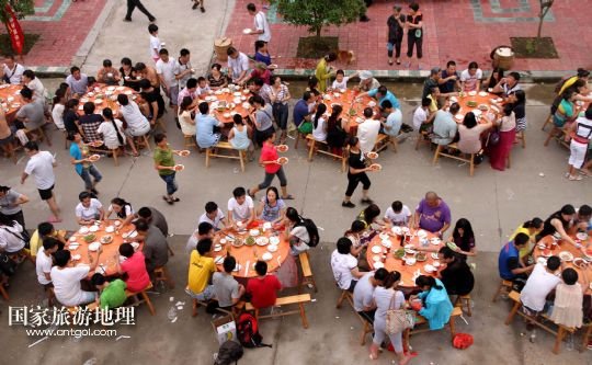 4月27日,參加農宿游的游客在江西省靖安縣高湖鎮(zhèn)西頭村吃農家飯。