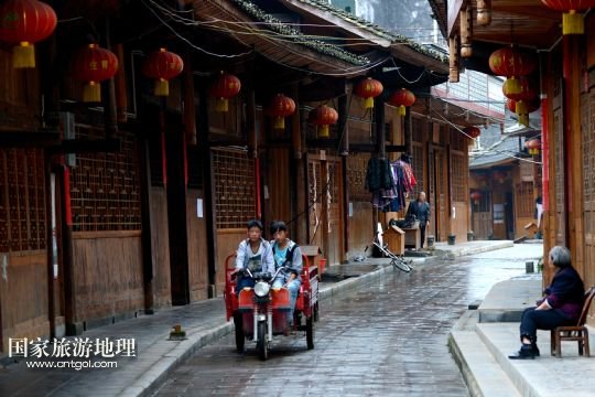 國(guó)家旅游地理 湖北恩施5月25日訊 5月24日拍攝的板寮村老街。在湖北西部山區(qū)恩施土家族苗族自治州宣恩縣深山里,一方難得的平川上坐落著“川鹽濟(jì)湘”“巴鹽古道”中的一個(gè)驛站——板寮村。村里有500多戶人家,200多年前這里作為古道驛站,騾馬蕭蕭,商賈云集;如今這里是全國(guó)“美麗鄉(xiāng)村”創(chuàng)建試點(diǎn)村,吊腳樓民居整齊排列,醫(yī)院、學(xué)校等一應(yīng)俱全,一座“袖珍小城”讓農(nóng)民們盡享“就地城鎮(zhèn)化”帶來的舒適生活。
