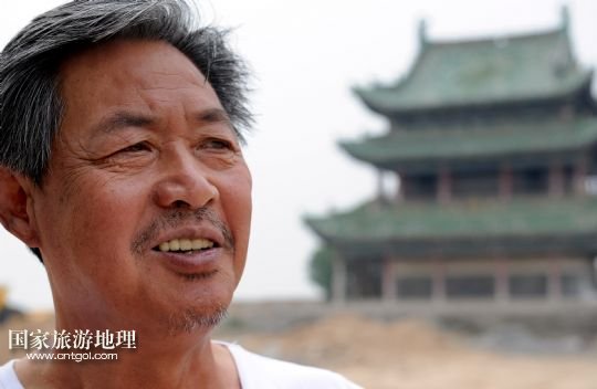 6月18日,陜西省文物保護(hù)員李潤(rùn)倉(cāng)在向游人介紹宋祠修繕情況。今年已63歲的他30年如一年,義務(wù)看管保護(hù)唐塔和宋祠,被傳為佳話(huà)。