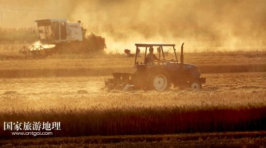 關(guān)中收獲夏糧的場(chǎng)景(6月5日攝)。朝邑鎮(zhèn)是關(guān)中糧倉(cāng)的最東端,也是每年收獲夏糧最早的地方。
