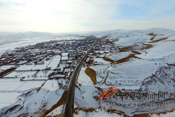 海原縣位于寧夏南部山區(qū),在這里山間分布著無數(shù)的小山村,雪后的小山村因?yàn)榘籽┑母采w擁有了別有滋味的寧靜與安逸。站在遠(yuǎn)處,白雪、群山、蓋著白雪的村莊,淡淡的藍(lán)天,這一切相映成趣美不勝收。 寧夏新聞網(wǎng)記者 祁瀛濤 攝