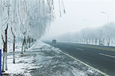 12月23日,銀川永寧快速通道兩旁呈現(xiàn)“霧凇”美景。據(jù)了解,霧凇俗稱樹掛,是一種冰雪美景。它是由于霧中無(wú)數(shù)零攝氏度以下而尚未結(jié)冰的霧滴隨風(fēng)在樹枝等物上不斷積聚凍粘的結(jié)果。霧凇現(xiàn)象在我國(guó)北方是很普遍的。記者 吳春霖 攝