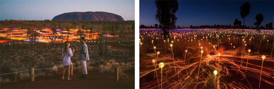 同步煥新的高端體驗“原野星光之夜(A Night at Field of Light)”新增了專業(yè)觀星望遠鏡、創(chuàng)意餐前小點與升級版自助菜單,并配以雅致的餐桌布置,讓游客在奇幻光海與無垠星空交織之下,體驗一場難忘的感官盛宴。