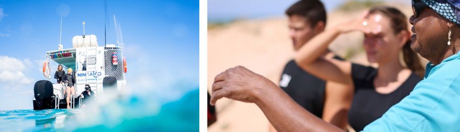 寧加洛玻璃底船公司(Ningaloo Glass Bottom Boat)與Baiyungu Dreamin攜手推出了全新的沉浸式Nyinngulu文化浮潛之旅。由守護寧加洛傳統的Baiyungu原住民向導全程帶領,參與者將乘坐玻璃底船領略寧加洛海岸豐富的文化遺產:近距離觀賞珊瑚礁、聆聽古老傳說、體驗原住民文化,并在浮潛中親自探索這片美麗的海域。